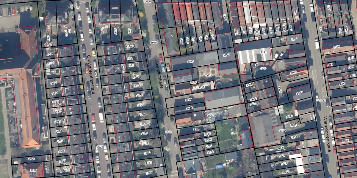 Gebruik de zoekbalk of klik op een perceel voor informatie over de adressen binnen dit perceel.