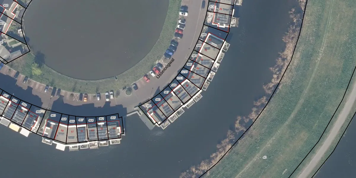 IJsseloogwal 41 is gelegen op kadastraal perceel GDA01N989. Deze kadastrale aanduiding is uniek en wordt gebruikt door het Kadaster om eigendomsrechten en andere zakelijke rechten vast te leggen. Het perceel maakt onderdeel uit van de kadastrale gemeente Gouda.