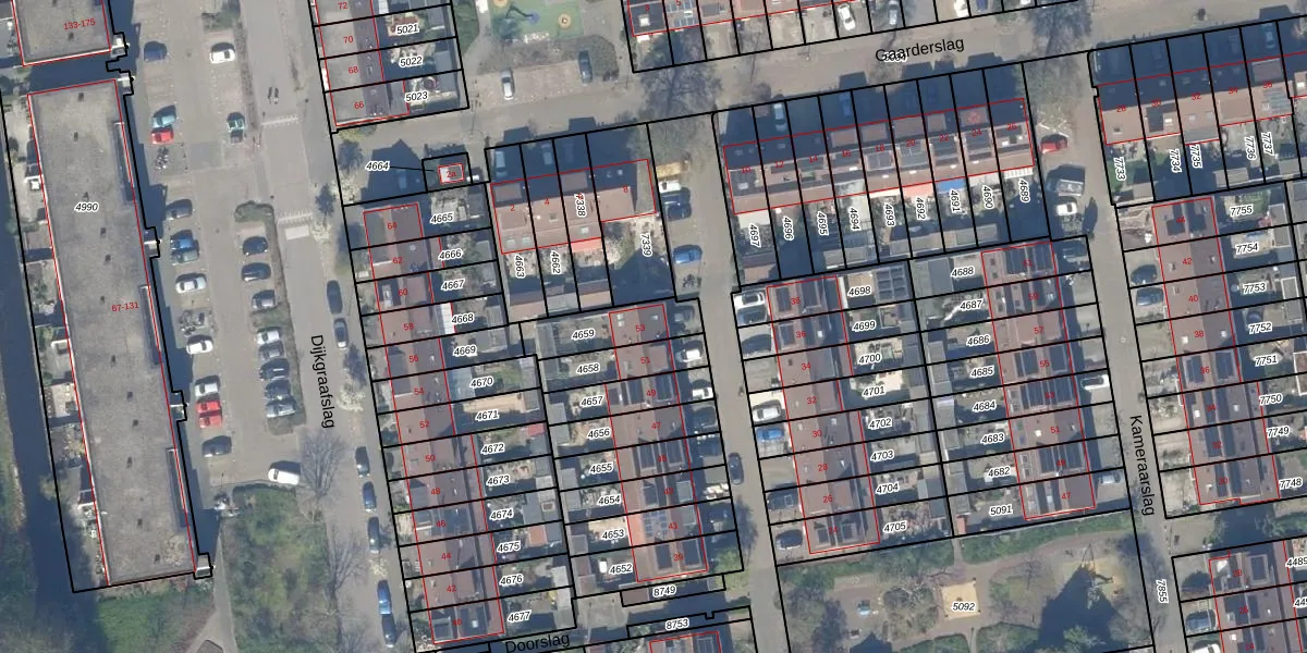 Gebruik de zoekbalk of klik op een perceel voor informatie over de adressen binnen dit perceel.