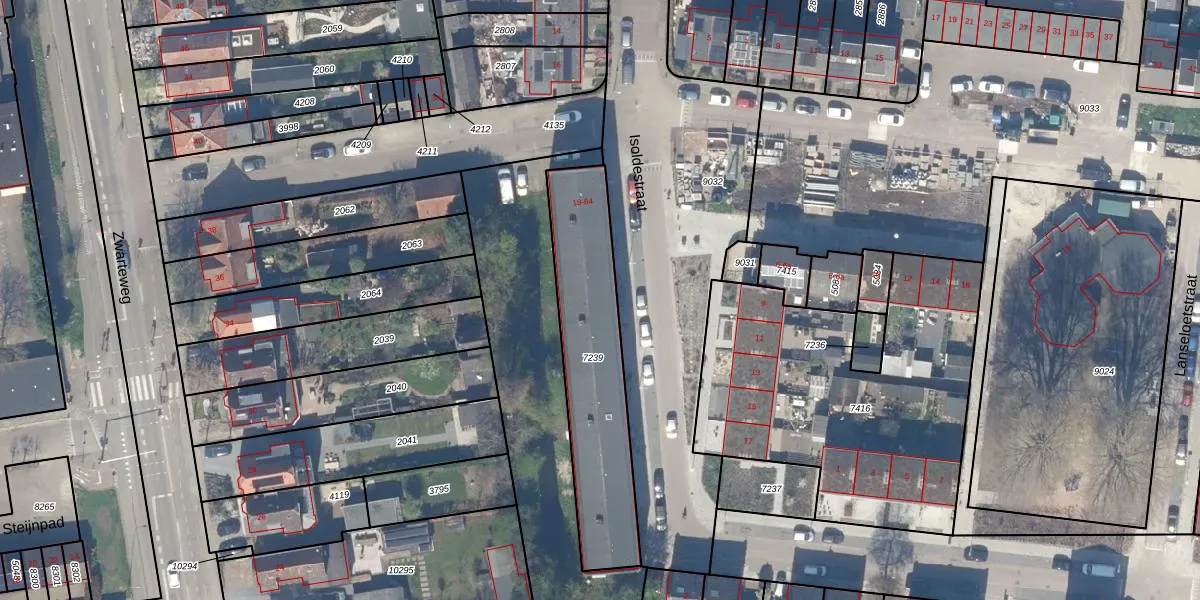 Isoldestraat 34 is gelegen op kadastraal perceel GDA01K7239. Deze kadastrale aanduiding is uniek en wordt gebruikt door het Kadaster om eigendomsrechten en andere zakelijke rechten vast te leggen. Het perceel maakt onderdeel uit van de kadastrale gemeente Gouda.