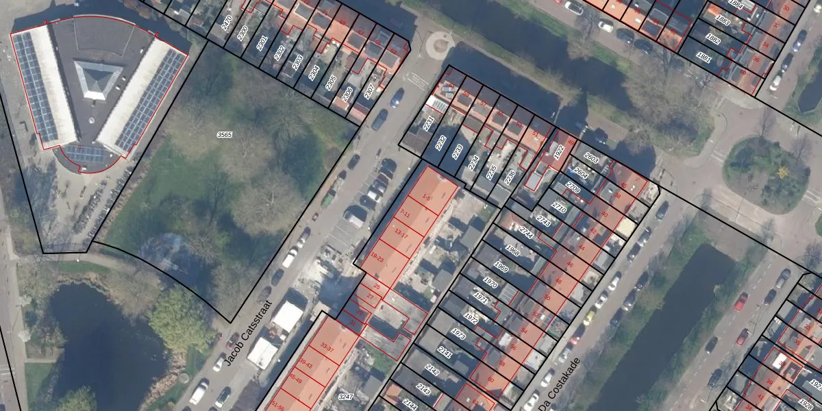 Jacob Catsstraat 7 is gelegen op kadastraal perceel GDA01F3247. Deze kadastrale aanduiding is uniek en wordt gebruikt door het Kadaster om eigendomsrechten en andere zakelijke rechten vast te leggen. Het perceel maakt onderdeel uit van de kadastrale gemeente Gouda.