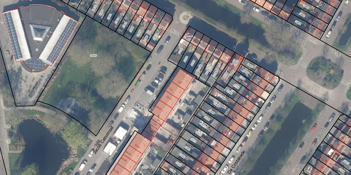 Jacob Catsstraat 9 is gelegen op kadastraal perceel GDA01F3247. Deze kadastrale aanduiding is uniek en wordt gebruikt door het Kadaster om eigendomsrechten en andere zakelijke rechten vast te leggen. Het perceel maakt onderdeel uit van de kadastrale gemeente Gouda.