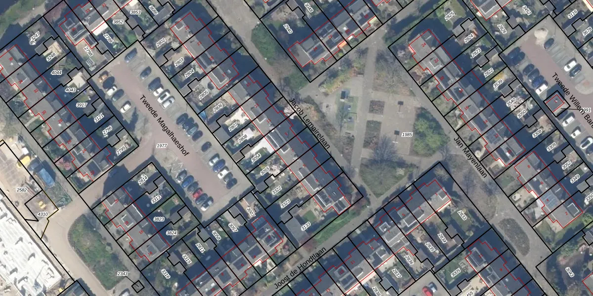 Gebruik de zoekbalk of klik op een perceel voor informatie over de adressen binnen dit perceel.