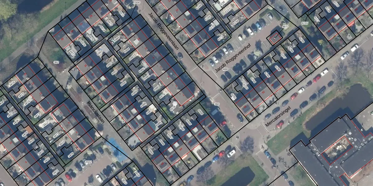 Jacob Roggeveenlaan 1 is gelegen op kadastraal perceel GDA01M6978. Deze kadastrale aanduiding is uniek en wordt gebruikt door het Kadaster om eigendomsrechten en andere zakelijke rechten vast te leggen. Het perceel maakt onderdeel uit van de kadastrale gemeente Gouda.