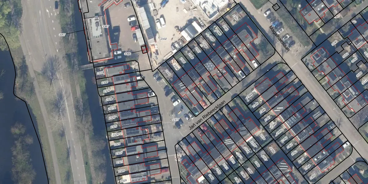 Gebruik de zoekbalk of klik op een perceel voor informatie over de adressen binnen dit perceel.