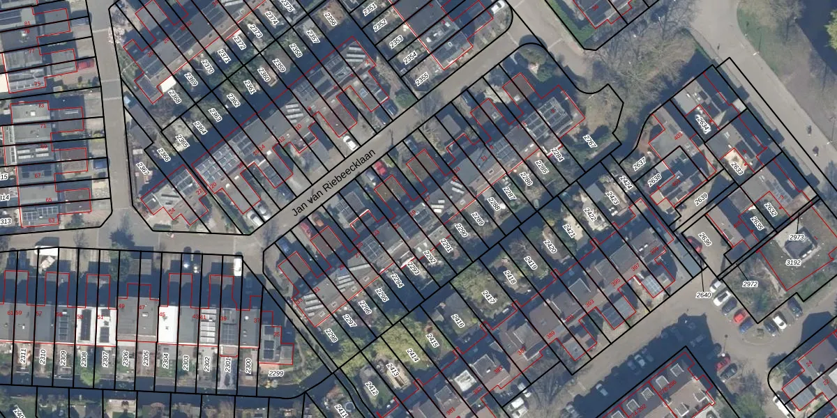 Gebruik de zoekbalk of klik op een perceel voor informatie over de adressen binnen dit perceel.