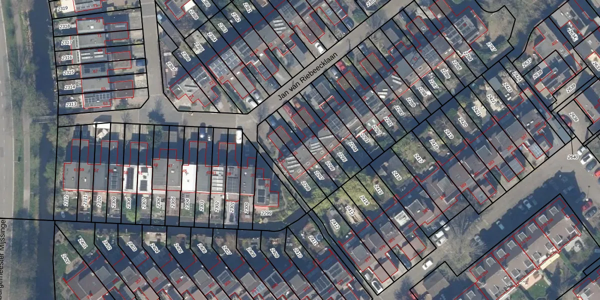 Gebruik de zoekbalk of klik op een perceel voor informatie over de adressen binnen dit perceel.