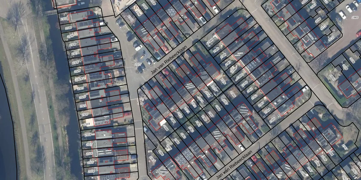 Gebruik de zoekbalk of klik op een perceel voor informatie over de adressen binnen dit perceel.