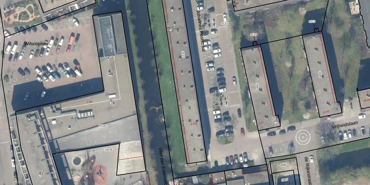 Het perceel waarop Johannes Poststraat 124 staat heeft een oppervlakte van 1189 m². Dit is een zeer groot perceel. De perceeloppervlakte wordt geregistreerd door het Kadaster. Gedetailleerde informatie over de maten van dit perceel kunt u vinden in het rapport Kadastrale kaart met maatvoering van Johannes Poststraat 124.