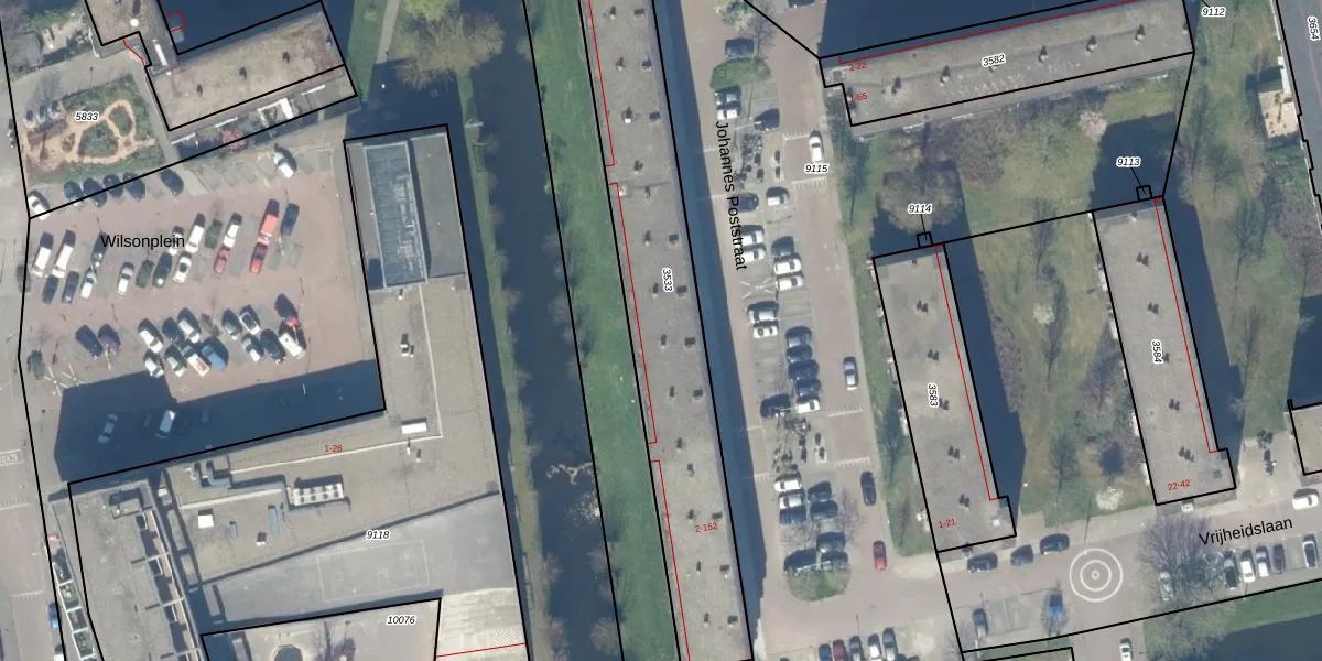 Het perceel waarop Johannes Poststraat 128 staat heeft een oppervlakte van 1189 m². Dit is een zeer groot perceel. De perceeloppervlakte wordt geregistreerd door het Kadaster. Gedetailleerde informatie over de maten van dit perceel kunt u vinden in het rapport Kadastrale kaart met maatvoering van Johannes Poststraat 128.