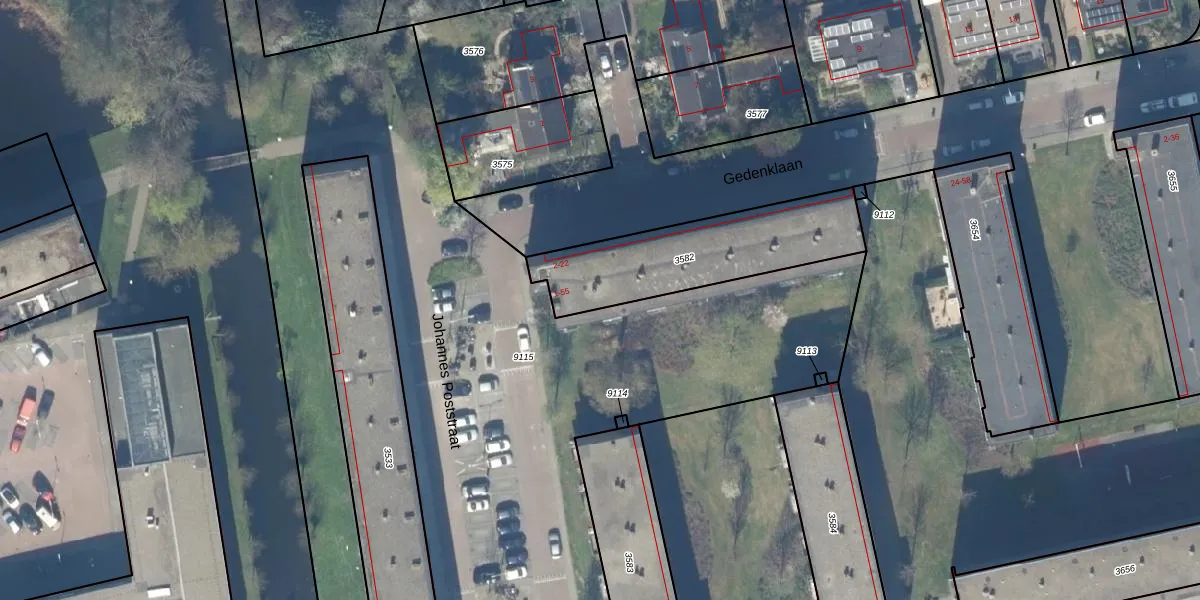 Het perceel waarop Johannes Poststraat 15 staat heeft een oppervlakte van 590 m². Dit is een groot perceel. De perceeloppervlakte wordt geregistreerd door het Kadaster. Gedetailleerde informatie over de maten van dit perceel kunt u vinden in het rapport Kadastrale kaart met maatvoering van Johannes Poststraat 15.