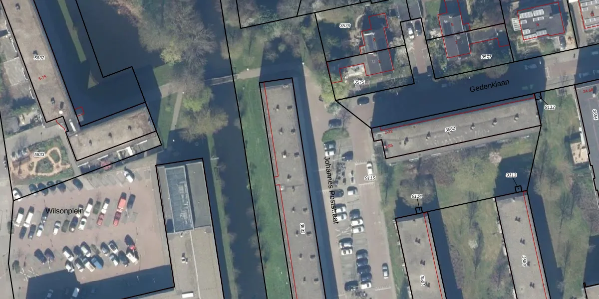 Het perceel waarop Johannes Poststraat 38 staat heeft een oppervlakte van 1189 m². Dit is een zeer groot perceel. De perceeloppervlakte wordt geregistreerd door het Kadaster. Gedetailleerde informatie over de maten van dit perceel kunt u vinden in het rapport Kadastrale kaart met maatvoering van Johannes Poststraat 38.