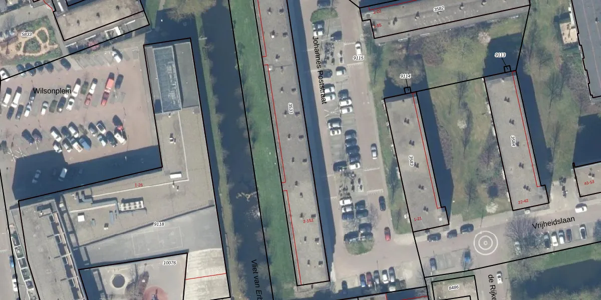 Het perceel waarop Johannes Poststraat 62 staat heeft een oppervlakte van 1189 m². Dit is een zeer groot perceel. De perceeloppervlakte wordt geregistreerd door het Kadaster. Gedetailleerde informatie over de maten van dit perceel kunt u vinden in het rapport Kadastrale kaart met maatvoering van Johannes Poststraat 62.