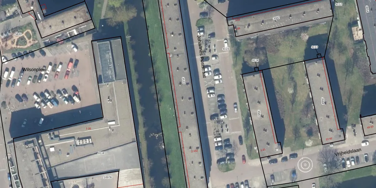 Het perceel waarop Johannes Poststraat 64 staat heeft een oppervlakte van 1189 m². Dit is een zeer groot perceel. De perceeloppervlakte wordt geregistreerd door het Kadaster. Gedetailleerde informatie over de maten van dit perceel kunt u vinden in het rapport Kadastrale kaart met maatvoering van Johannes Poststraat 64.