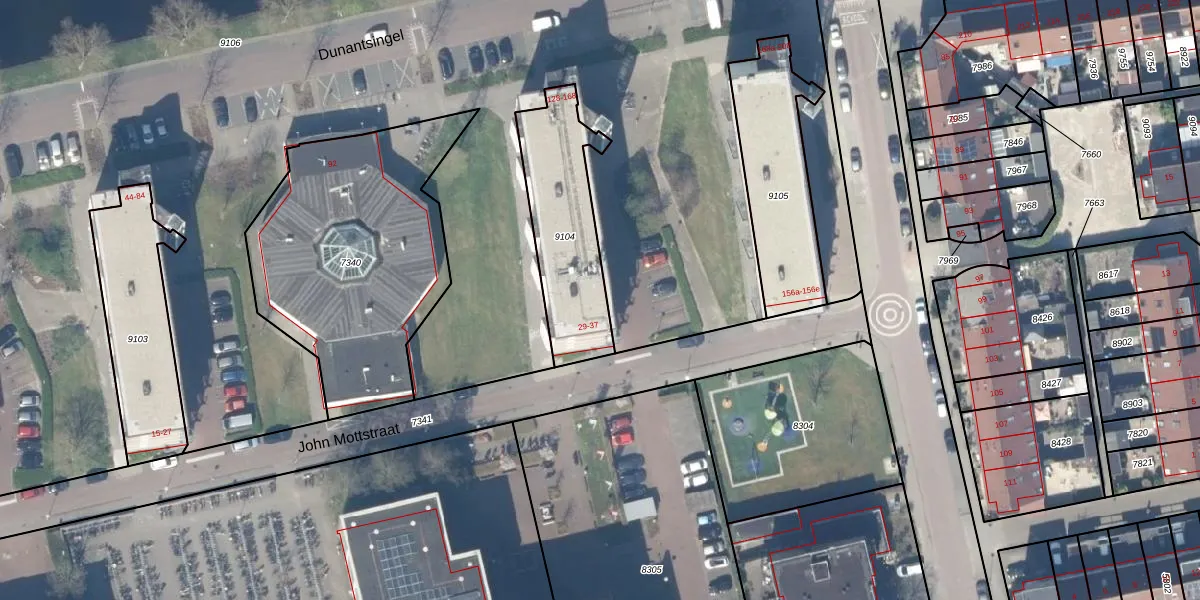 John Mottstraat 33 is gelegen op kadastraal perceel GDA01K9104. Deze kadastrale aanduiding is uniek en wordt gebruikt door het Kadaster om eigendomsrechten en andere zakelijke rechten vast te leggen. Het perceel maakt onderdeel uit van de kadastrale gemeente Gouda.