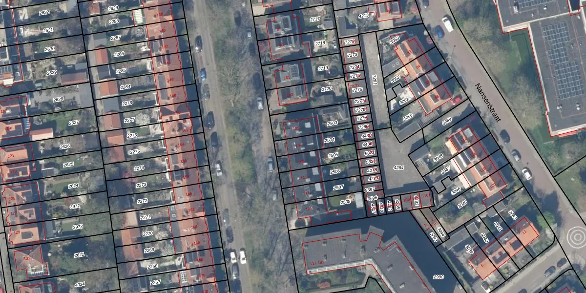 Gebruik de zoekbalk of klik op een perceel voor informatie over de adressen binnen dit perceel.