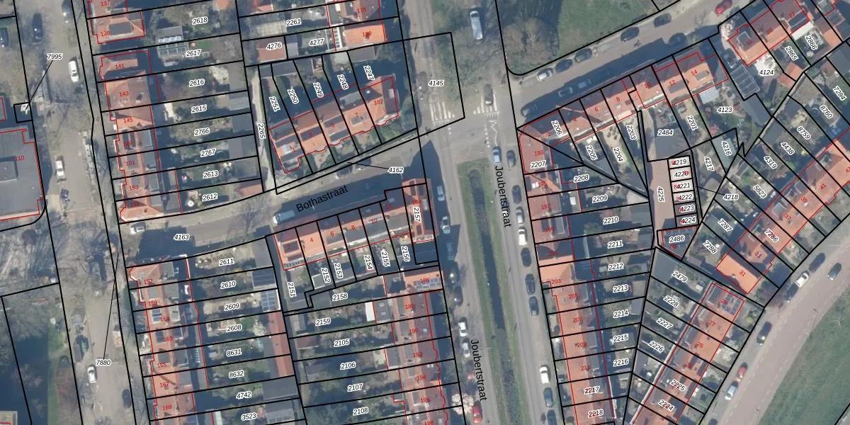 Gebruik de zoekbalk of klik op een perceel voor informatie over de adressen binnen dit perceel.