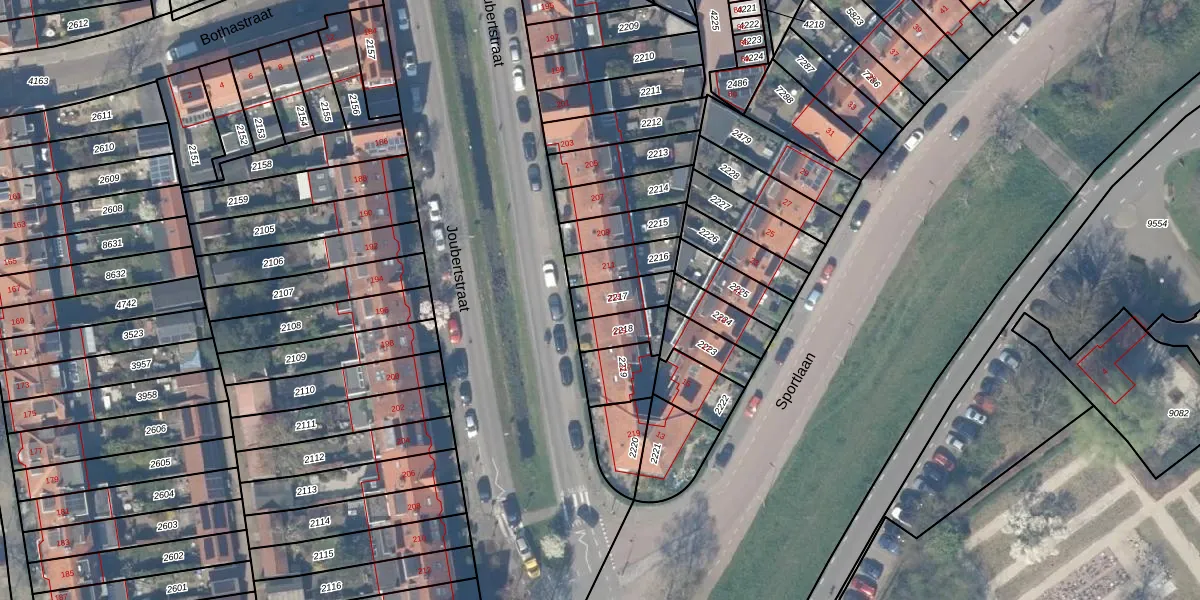 Joubertstraat 213 is gelegen op kadastraal perceel GDA01K2217. Deze kadastrale aanduiding is uniek en wordt gebruikt door het Kadaster om eigendomsrechten en andere zakelijke rechten vast te leggen. Het perceel maakt onderdeel uit van de kadastrale gemeente Gouda.