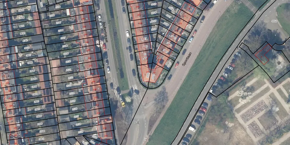 Joubertstraat 219 is gelegen op kadastraal perceel GDA01K2220. Deze kadastrale aanduiding is uniek en wordt gebruikt door het Kadaster om eigendomsrechten en andere zakelijke rechten vast te leggen. Het perceel maakt onderdeel uit van de kadastrale gemeente Gouda.
