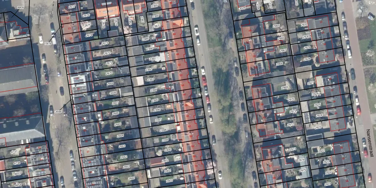 Gebruik de zoekbalk of klik op een perceel voor informatie over de adressen binnen dit perceel.