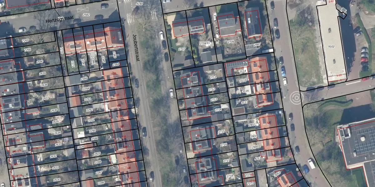 Joubertstraat 87 is gelegen op kadastraal perceel GDA01K2712. Deze kadastrale aanduiding is uniek en wordt gebruikt door het Kadaster om eigendomsrechten en andere zakelijke rechten vast te leggen. Het perceel maakt onderdeel uit van de kadastrale gemeente Gouda.