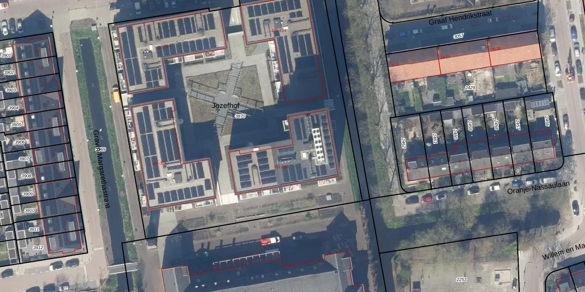 Jozefhof 202 is gelegen op kadastraal perceel GDA01I3870. Deze kadastrale aanduiding is uniek en wordt gebruikt door het Kadaster om eigendomsrechten en andere zakelijke rechten vast te leggen. Het perceel maakt onderdeel uit van de kadastrale gemeente Gouda.
