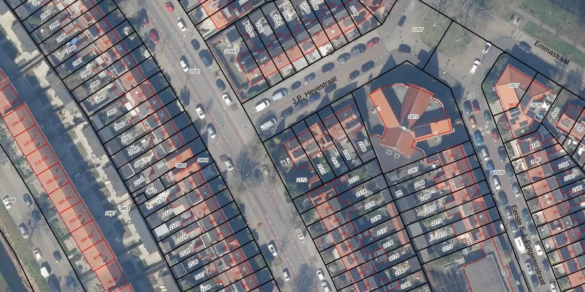 Gebruik de zoekbalk of klik op een perceel voor informatie over de adressen binnen dit perceel.