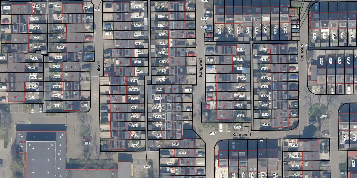 Gebruik de zoekbalk of klik op een perceel voor informatie over de adressen binnen dit perceel.