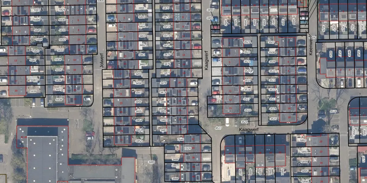 Gebruik de zoekbalk of klik op een perceel voor informatie over de adressen binnen dit perceel.