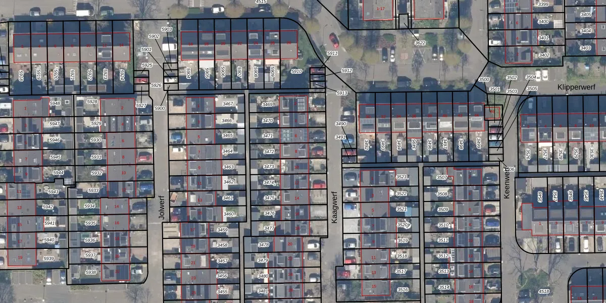 Gebruik de zoekbalk of klik op een perceel voor informatie over de adressen binnen dit perceel.