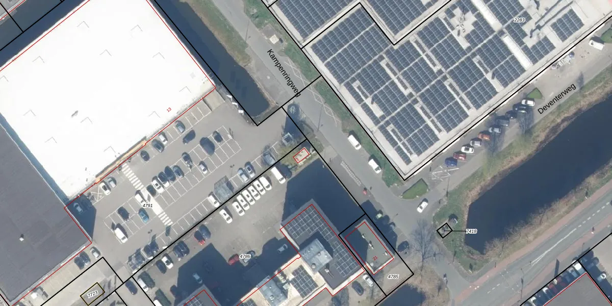 Het perceel waarop Kampenringweg 1 staat heeft een oppervlakte van 3870 m². Dit is een zeer groot perceel. De perceeloppervlakte wordt geregistreerd door het Kadaster. Gedetailleerde informatie over de maten van dit perceel kunt u vinden in het rapport Kadastrale kaart met maatvoering van Kampenringweg 1.