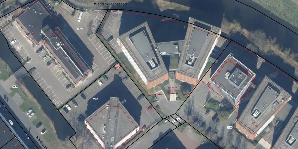 Het perceel waarop Kampenringweg 45-a staat heeft een oppervlakte van 3680 m². Dit is een zeer groot perceel. De perceeloppervlakte wordt geregistreerd door het Kadaster. Gedetailleerde informatie over de maten van dit perceel kunt u vinden in het rapport Kadastrale kaart met maatvoering van Kampenringweg 45-a.