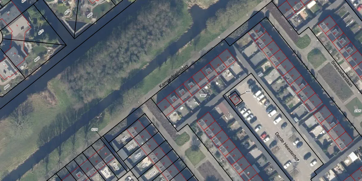 Het perceel waarop Kamperfoelielaan 27 staat heeft een oppervlakte van 6640 m². Dit is een zeer groot perceel. De perceeloppervlakte wordt geregistreerd door het Kadaster. Gedetailleerde informatie over de maten van dit perceel kunt u vinden in het rapport Kadastrale kaart met maatvoering van Kamperfoelielaan 27.