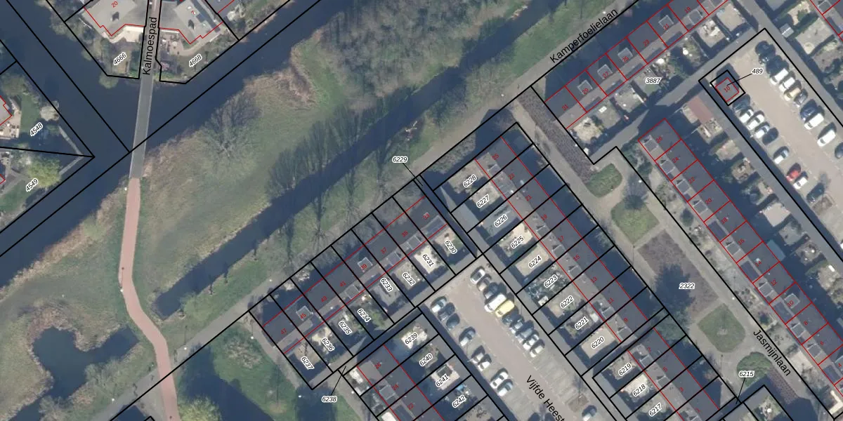 Kamperfoelielaan 33 is gelegen op kadastraal perceel GDA01M6230. Deze kadastrale aanduiding is uniek en wordt gebruikt door het Kadaster om eigendomsrechten en andere zakelijke rechten vast te leggen. Het perceel maakt onderdeel uit van de kadastrale gemeente Gouda.