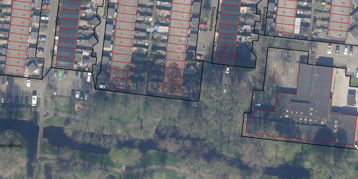 Het perceel waarop Kannenburg 24 staat heeft een oppervlakte van 3871 m². Dit is een zeer groot perceel. De perceeloppervlakte wordt geregistreerd door het Kadaster. Gedetailleerde informatie over de maten van dit perceel kunt u vinden in het rapport Kadastrale kaart met maatvoering van Kannenburg 24.