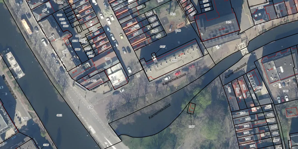Karnemelksloot 27 is gelegen op kadastraal perceel GDA01A8101. Deze kadastrale aanduiding is uniek en wordt gebruikt door het Kadaster om eigendomsrechten en andere zakelijke rechten vast te leggen. Het perceel maakt onderdeel uit van de kadastrale gemeente Gouda.