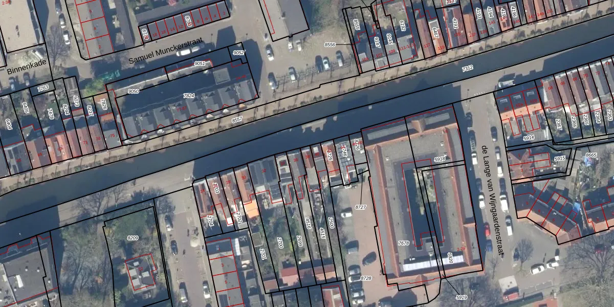 Gebruik de zoekbalk of klik op een perceel voor informatie over de adressen binnen dit perceel.