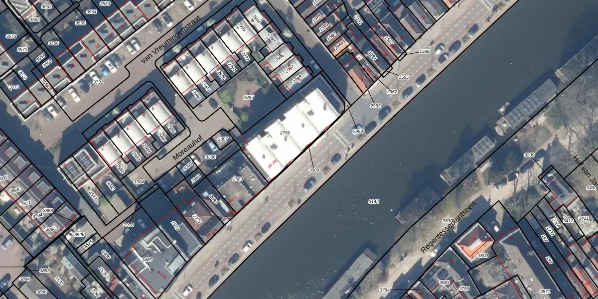 Het perceel waarop het adres ligt is GDA01-H-2756. De afkorting 'GDA01' staat voor kadastrale gemeente Gouda. De gemiddelde perceelgrootte in Gouda is 681,16 m². Dit perceel is kleiner: de perceeloppervlakte bedraagt 623 m². Het kleinste perceel in de kadastrale gemeente is 0 m² groot. De grootste perceeloppervlakte is 24,2 ha. Op het perceel zijn 16 adressen aanwezig. De huidige grenzen van het perceel zijn digitaal in de Basisregistratie Kadaster (BRK) geregistreerd op 25-09-2003.