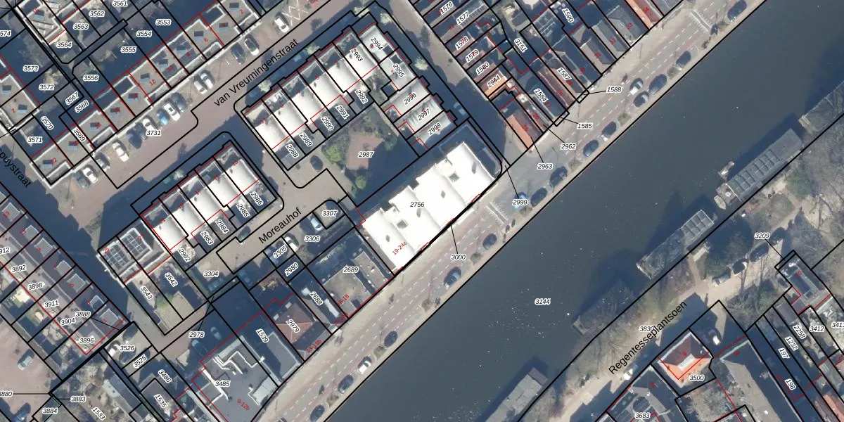 Het perceel waarop het adres ligt is GDA01-H-2756. De afkorting 'GDA01' staat voor kadastrale gemeente Gouda. De gemiddelde perceelgrootte in Gouda is 681,16 m². Dit perceel is kleiner: de perceeloppervlakte bedraagt 623 m². Het kleinste perceel in de kadastrale gemeente is 0 m² groot. De grootste perceeloppervlakte is 24,2 ha. Op het perceel zijn 16 adressen aanwezig. In de Basisregistratie Kadaster (BRK) werden de grenzen van het perceel geregistreerd op 25-09-2003.