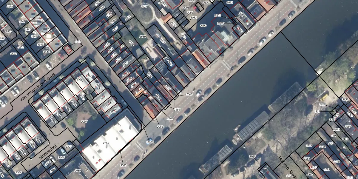 Kattensingel 30 is gelegen op kadastraal perceel GDA01H1589. Deze kadastrale aanduiding is uniek en wordt gebruikt door het Kadaster om eigendomsrechten en andere zakelijke rechten vast te leggen. Het perceel maakt onderdeel uit van de kadastrale gemeente Gouda.