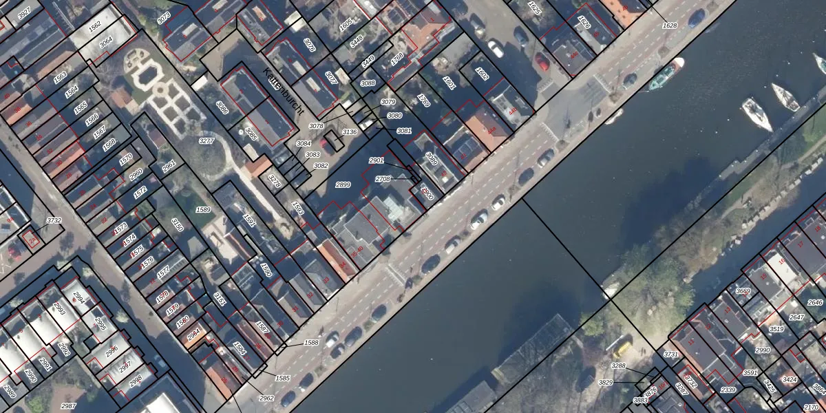 Kattensingel 40 is gelegen op kadastraal perceel GDA01H2899. Deze kadastrale aanduiding is uniek en wordt gebruikt door het Kadaster om eigendomsrechten en andere zakelijke rechten vast te leggen. Het perceel maakt onderdeel uit van de kadastrale gemeente Gouda.