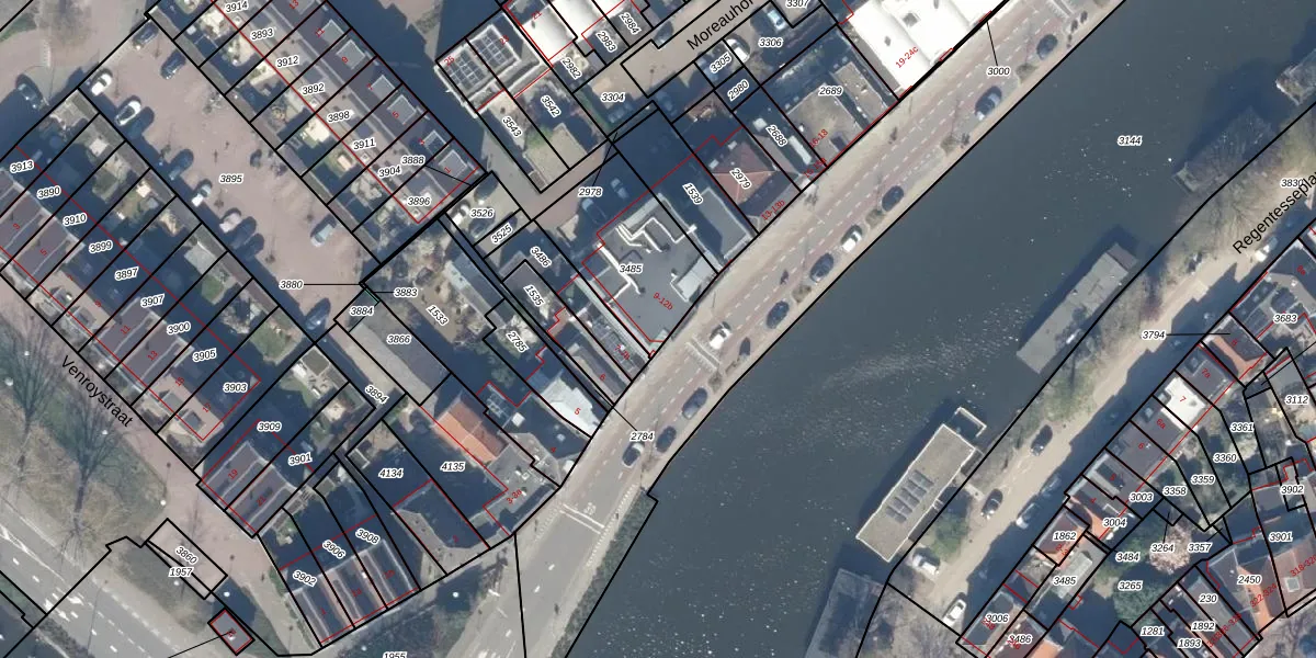 Kattensingel 9 is gelegen op kadastraal perceel GDA01H3485. Deze kadastrale aanduiding is uniek en wordt gebruikt door het Kadaster om eigendomsrechten en andere zakelijke rechten vast te leggen. Het perceel maakt onderdeel uit van de kadastrale gemeente Gouda.