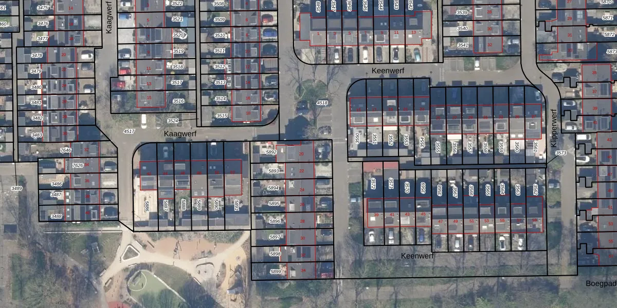Het perceel waarop Keenwerf 20 staat heeft een oppervlakte van 190 m². Dit is een middelgroot perceel. De perceeloppervlakte wordt geregistreerd door het Kadaster. Gedetailleerde informatie over de maten van dit perceel kunt u vinden in het rapport Kadastrale kaart met maatvoering van Keenwerf 20.