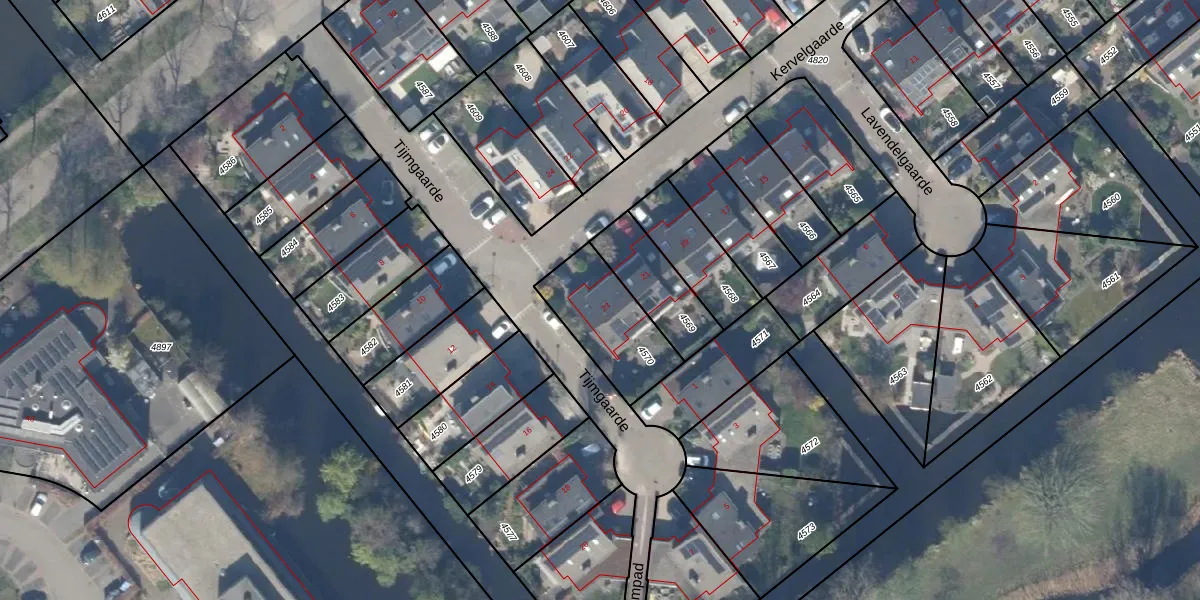 Het perceel waarop Kervelgaarde 23 staat heeft een oppervlakte van 302 m². Dit is een groot perceel. De perceeloppervlakte wordt geregistreerd door het Kadaster. Gedetailleerde informatie over de maten van dit perceel kunt u vinden in het rapport Kadastrale kaart met maatvoering van Kervelgaarde 23.