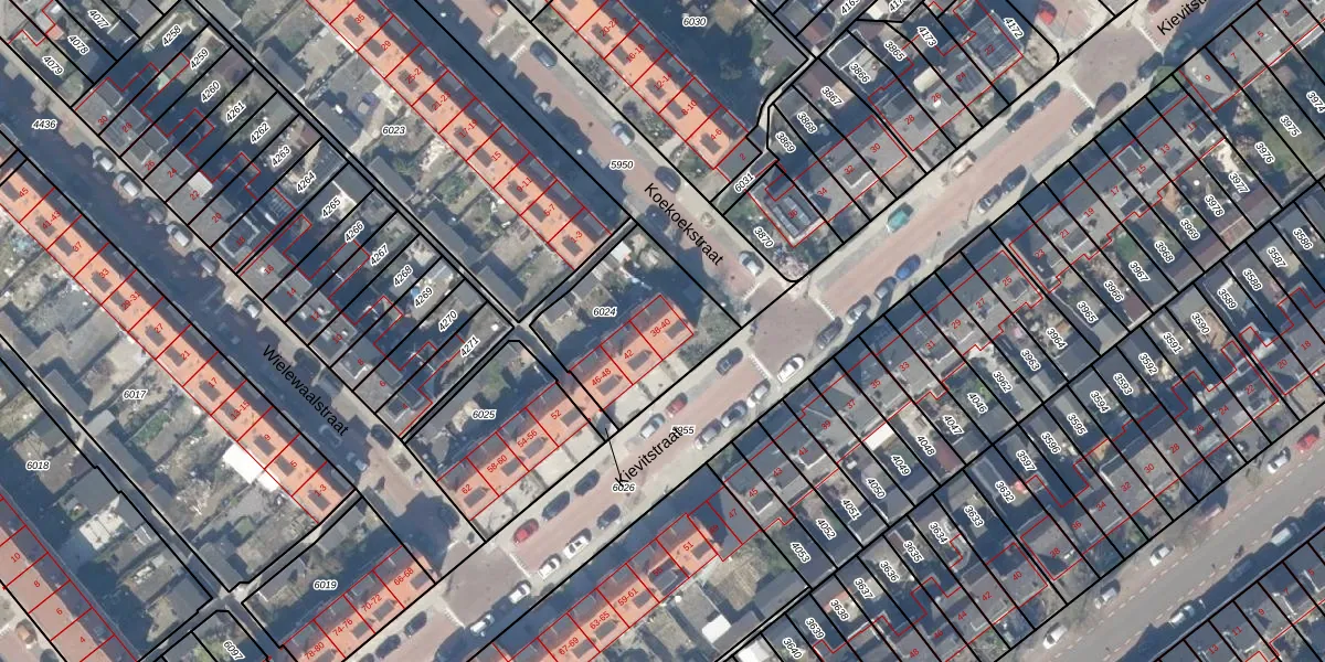 Kievitstraat 40 is gelegen op kadastraal perceel GDA01E6024. Deze kadastrale aanduiding is uniek en wordt gebruikt door het Kadaster om eigendomsrechten en andere zakelijke rechten vast te leggen. Het perceel maakt onderdeel uit van de kadastrale gemeente Gouda.