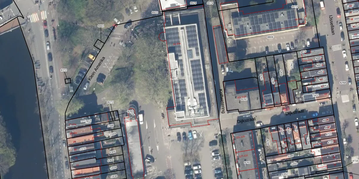 Het perceel waarop het adres ligt is GDA01-A-9116. De afkorting 'GDA01' staat voor kadastrale gemeente Gouda. De oppervlakte van het perceel is 1,3 ha. Dat is groter dan gemiddeld in Gouda, waar de gemiddelde perceeloppervlakte op 678,96 m² ligt. Het grootste perceel in de kadastrale gemeente is 24,2 ha. Het kleinste perceel heeft een oppervlakte van 0 m². Er zijn 4 adressen aanwezig op het perceel. De laatste wijziging in het de Basisregistratie Kadaster (BRK) was op 23-10-2024.