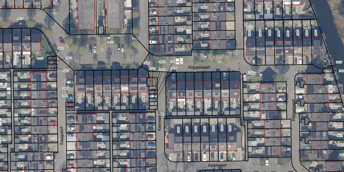 Gebruik de zoekbalk of klik op een perceel voor informatie over de adressen binnen dit perceel.