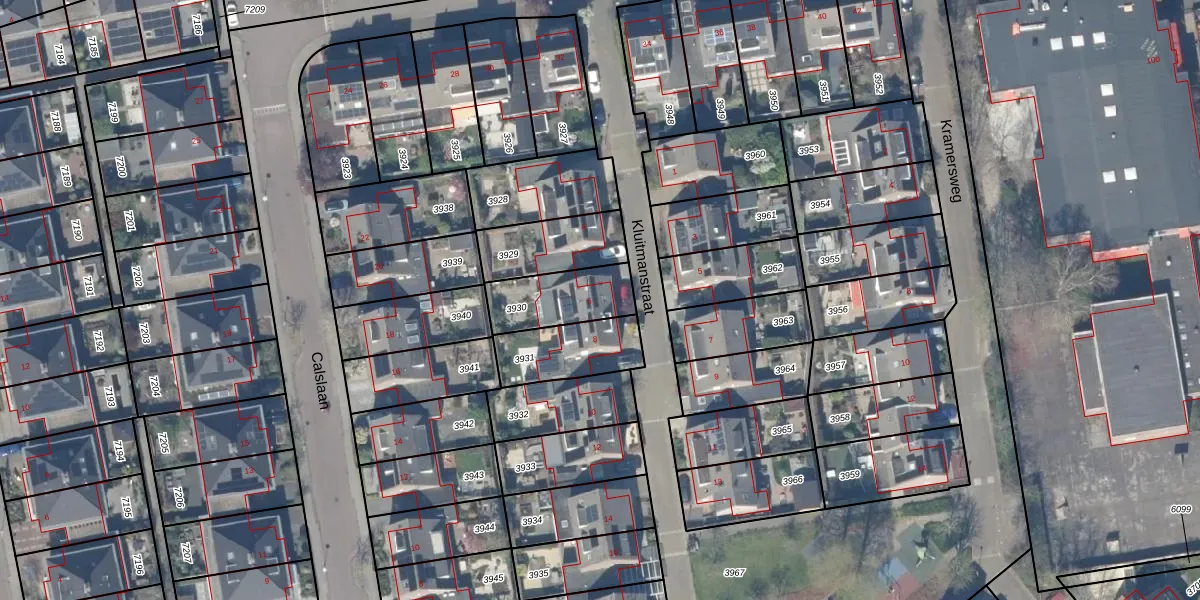 Gebruik de zoekbalk of klik op een perceel voor informatie over de adressen binnen dit perceel.