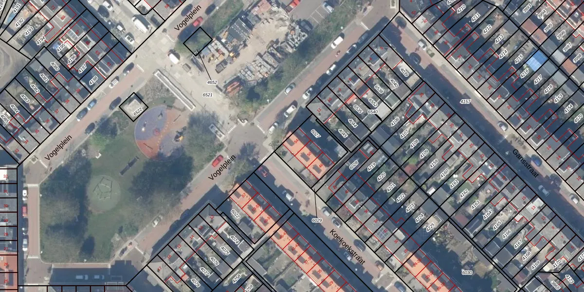 Koekoekstraat 54 is gelegen op kadastraal perceel GDA01E6027. Deze kadastrale aanduiding is uniek en wordt gebruikt door het Kadaster om eigendomsrechten en andere zakelijke rechten vast te leggen. Het perceel maakt onderdeel uit van de kadastrale gemeente Gouda.