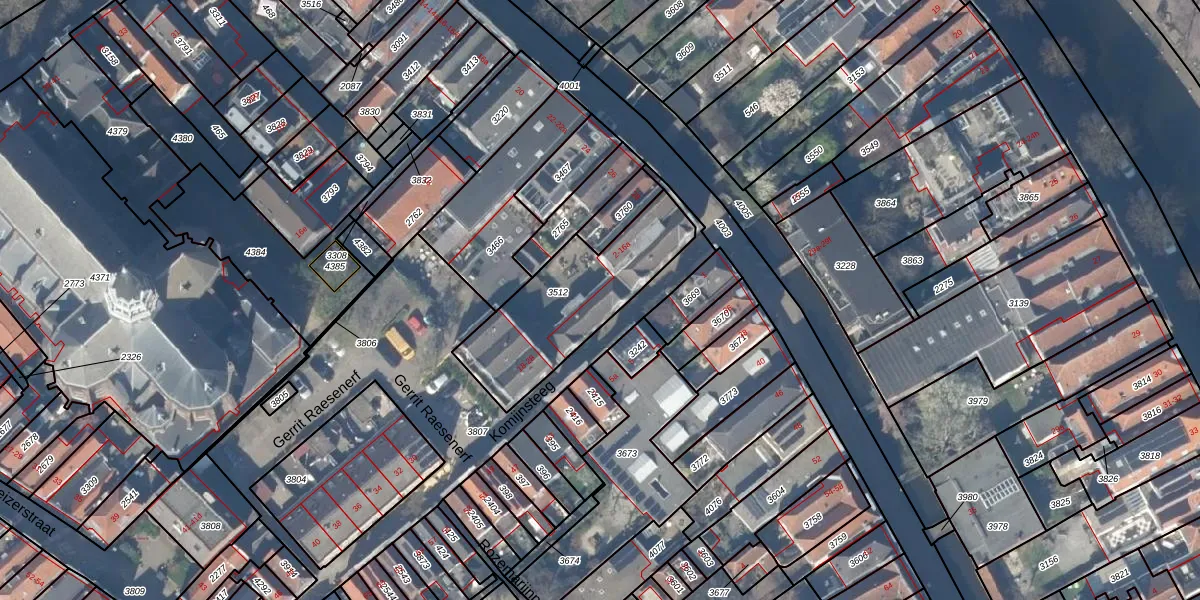 Het perceel waarop Komijnsteeg 8 staat heeft een oppervlakte van 565 m². Dit is een groot perceel. De perceeloppervlakte wordt geregistreerd door het Kadaster. Gedetailleerde informatie over de maten van dit perceel kunt u vinden in het rapport Kadastrale kaart met maatvoering van Komijnsteeg 8.